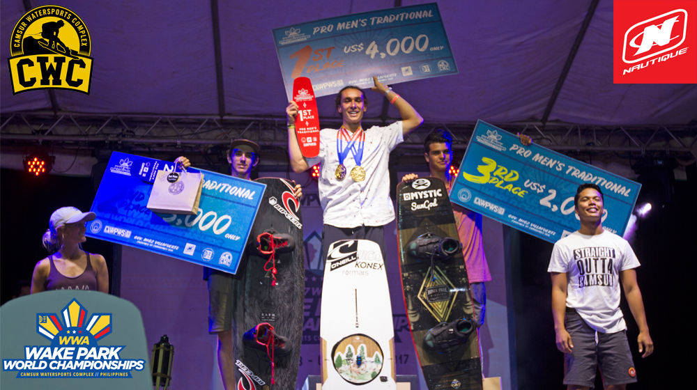 Camarines Sur, Philippines (October 1, 2017) – The Camsur Watersports Complex (CWC) provided the perfect destination for the 2017 WWA Wake Park World Championships presented by Nautique Boats. The final day of action showcased every feature to its full potential, leaving no question that CWC remains home to the most amazing riding in the world right here in paradise. Perfect weather kept the action moving all day long as the world’s best threw down in the most progressive finals in ever.
