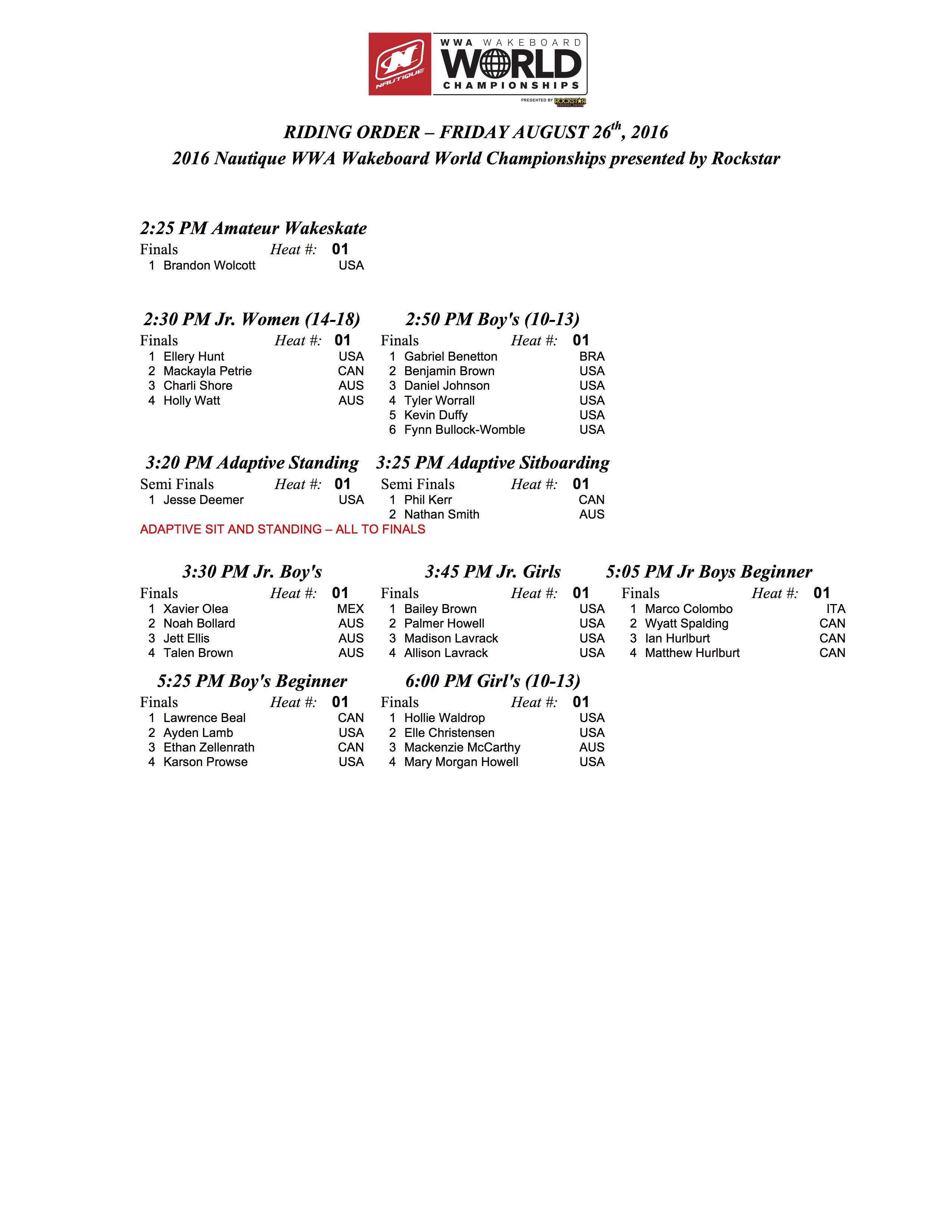 Worlds Friday Riding Order P2